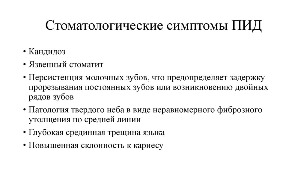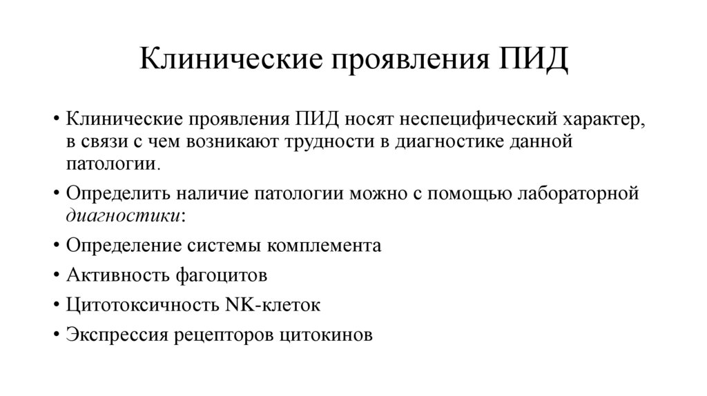 Клинические проявления ПИД• Клинические проявления ПИД носят неспецифический характер,