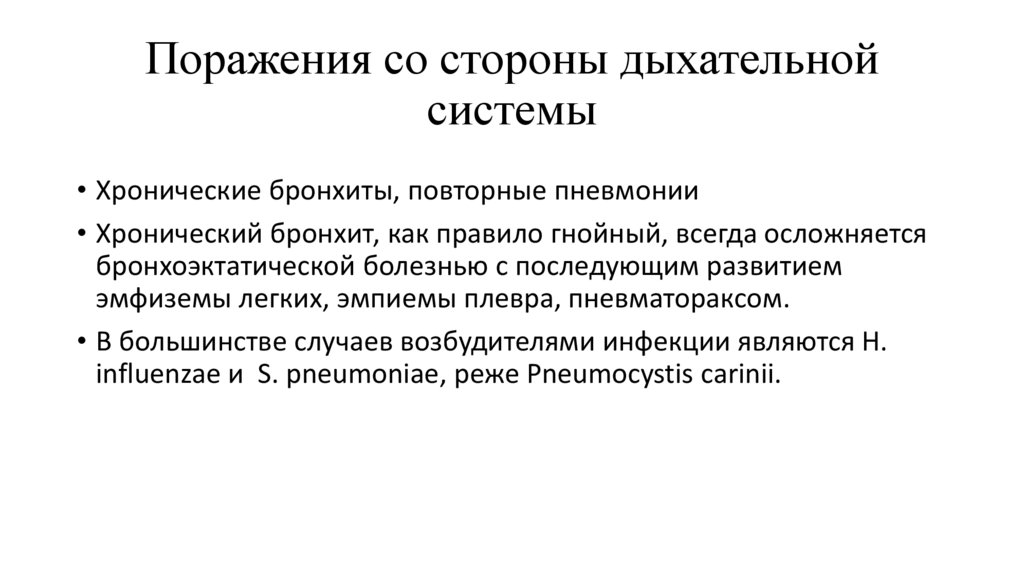 influenzae и S. pneumoniae, реже Pneumocystis carinii.
