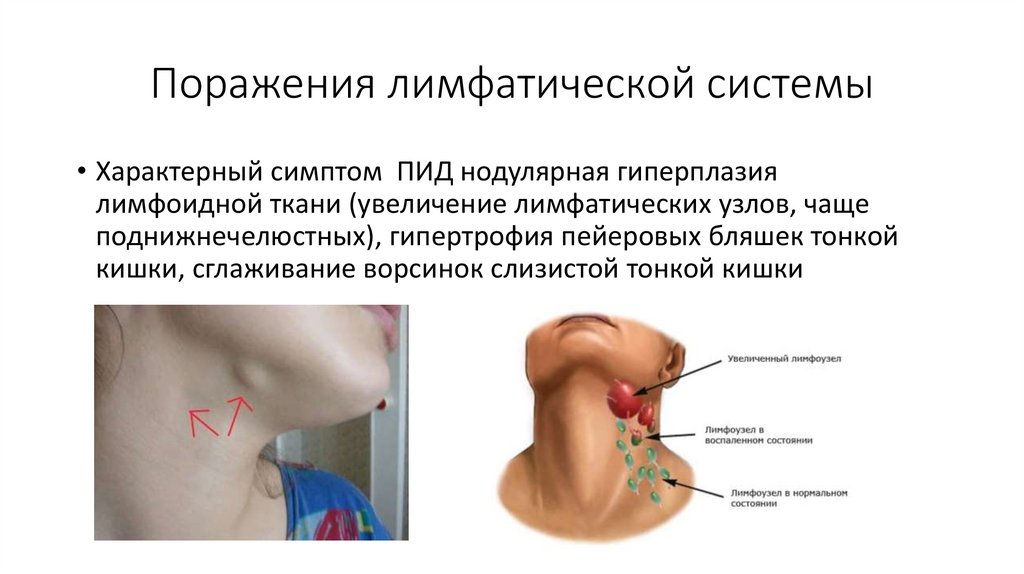 Поражения лимфатической системы• Характерный симптом ПИД нодулярная гиперплазия