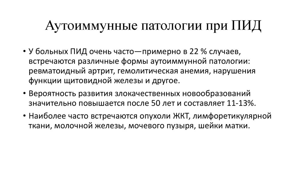 Аутоиммунные патологии при ПИД• У больных ПИД очень часто—примерно в 22 % случаев,