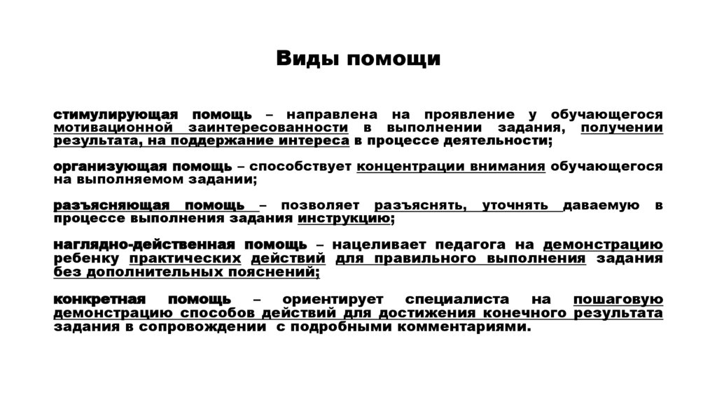 Виды помощистимулирующая помощь – направлена на проявление у обучающегося