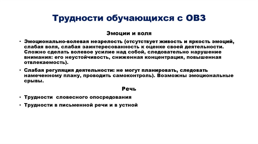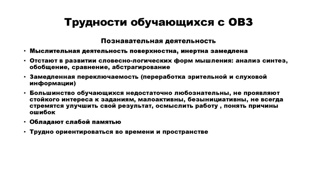 Трудности обучающихся с ОВЗПознавательная деятельность