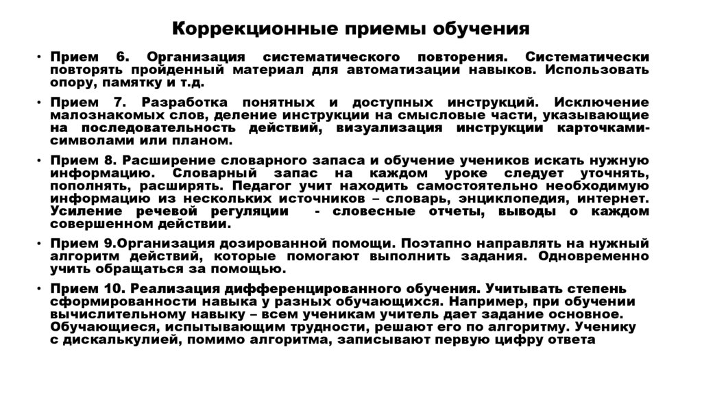 Коррекционные приемы обучения• Прием 6. Организация систематического повторения. Систематически