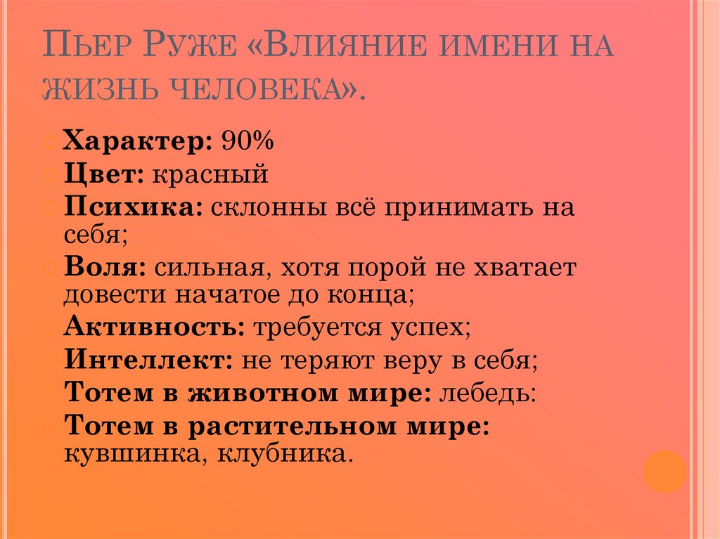 ПЬЕР РУЖЕ «ВЛИЯНИЕ ИМЕНИ НАЖИЗНЬ ЧЕЛОВЕКА».