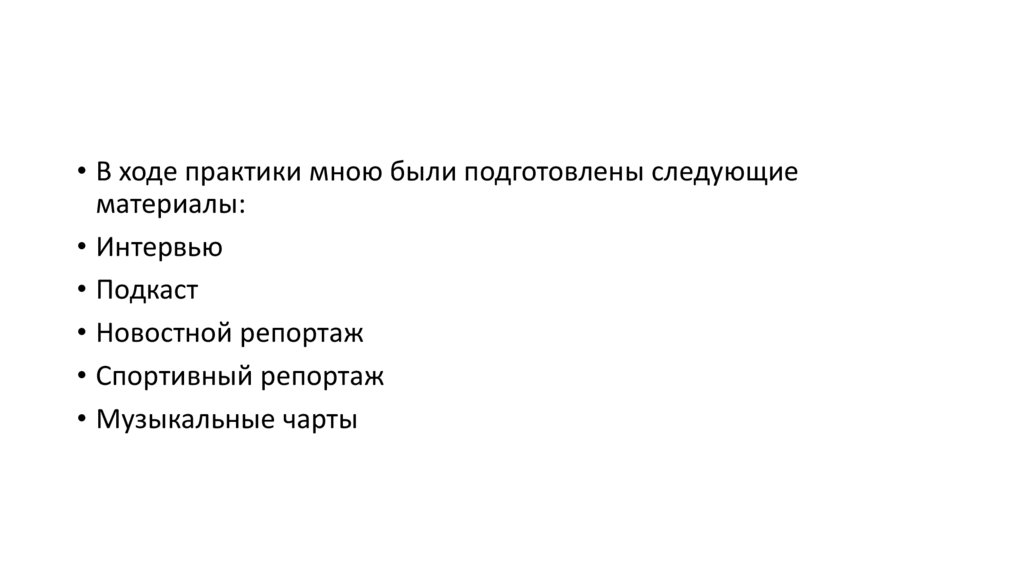 • Практику проходил в медиацентре ФСТ, на радионаправлении.Руководитель практики – Трифонов О.И.