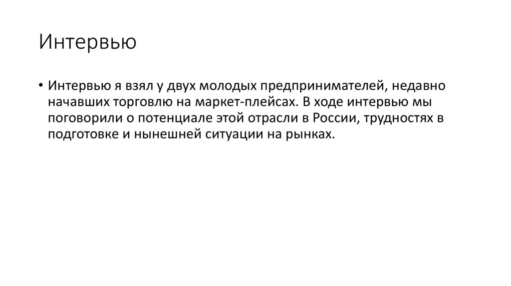 начавших торговлю на маркет-плейсах. В ходе интервью мы