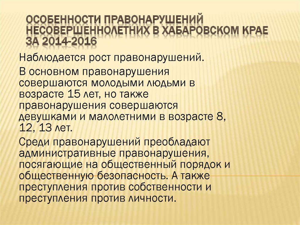 ОСОБЕННОСТИ ПРАВОНАРУШЕНИЙНЕСОВЕРШЕННОЛЕТНИХ В ХАБАРОВСКОМ КРАЕ