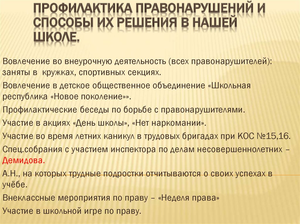 ПРОФИЛАКТИКА ПРАВОНАРУШЕНИЙ ИСПОСОБЫ ИХ РЕШЕНИЯ В НАШЕЙ