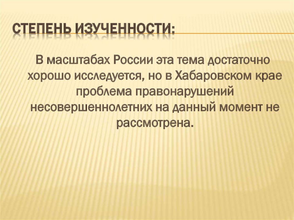 СТЕПЕНЬ ИЗУЧЕННОСТИ:В масштабах России эта тема достаточно