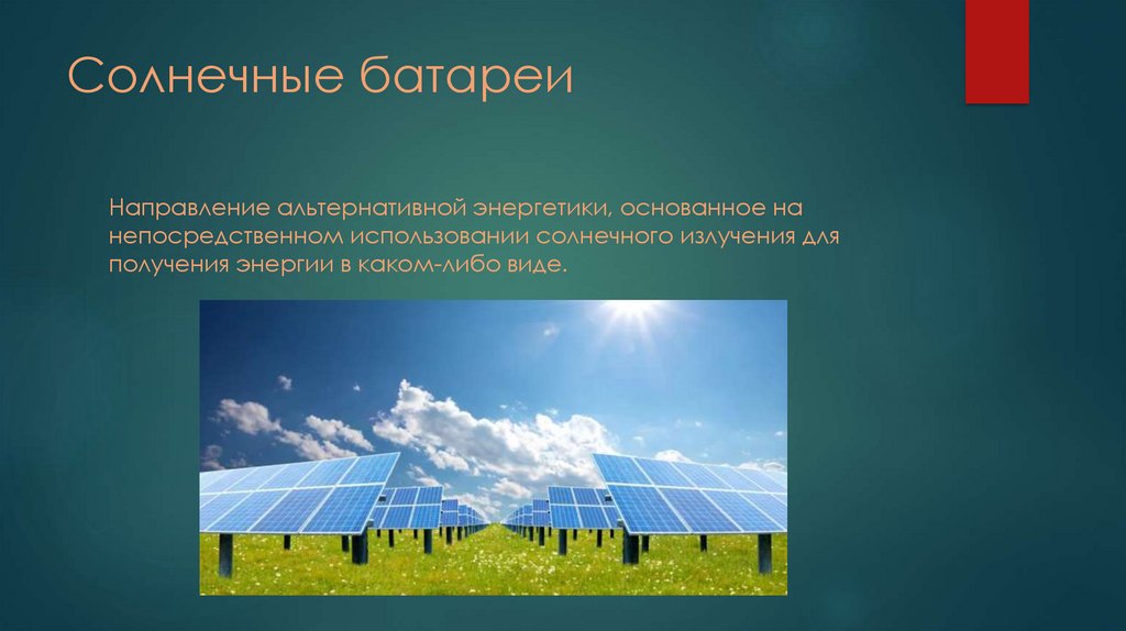 Солнечные батареиНаправление альтернативной энергетики, основанное на