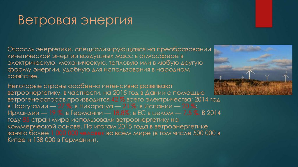 Ветровая энергияОтрасль энергетики, специализирующаяся на преобразовании