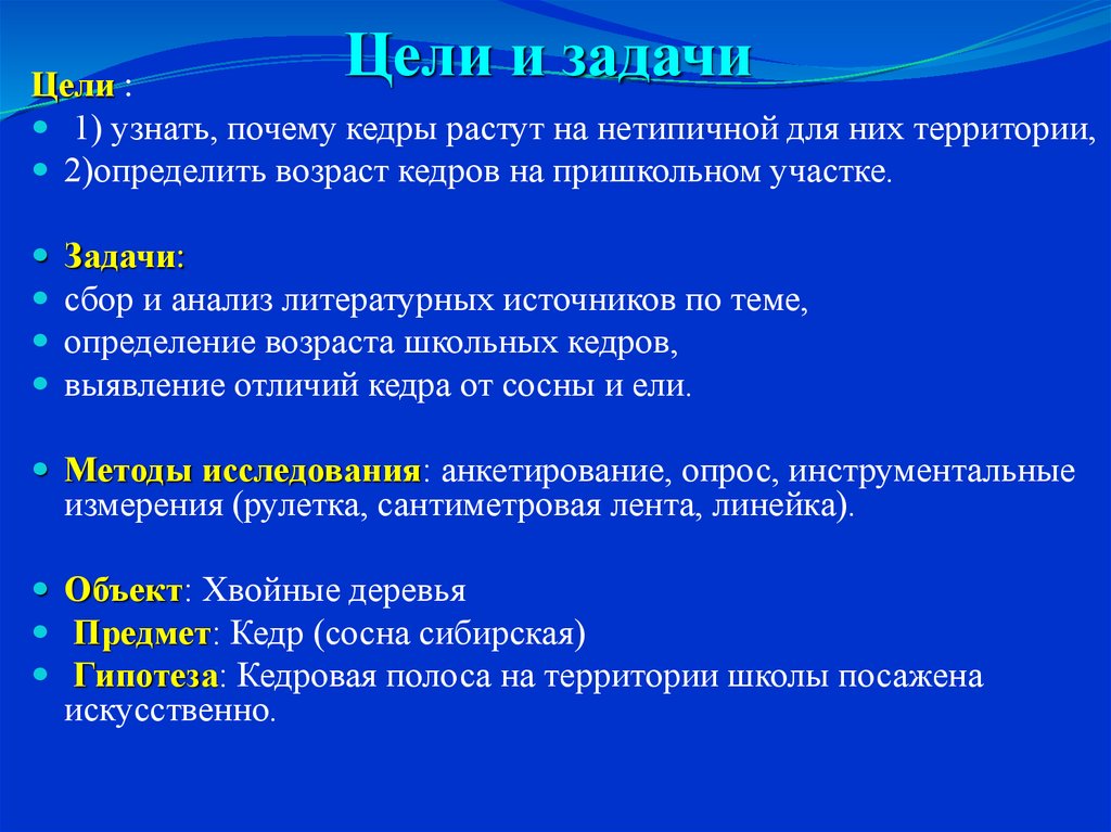 2)определить возраст кедров на пришкольном участке.