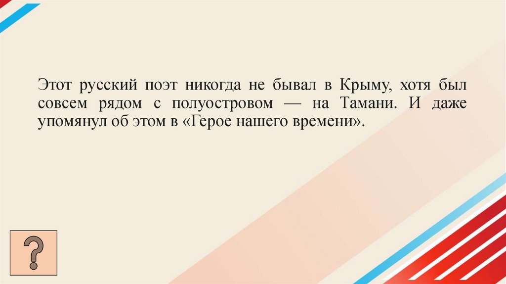 Этот русский поэт никогда не бывал в Крыму, хотя былсовсем рядом с полуостровом — на Тамани. И даже