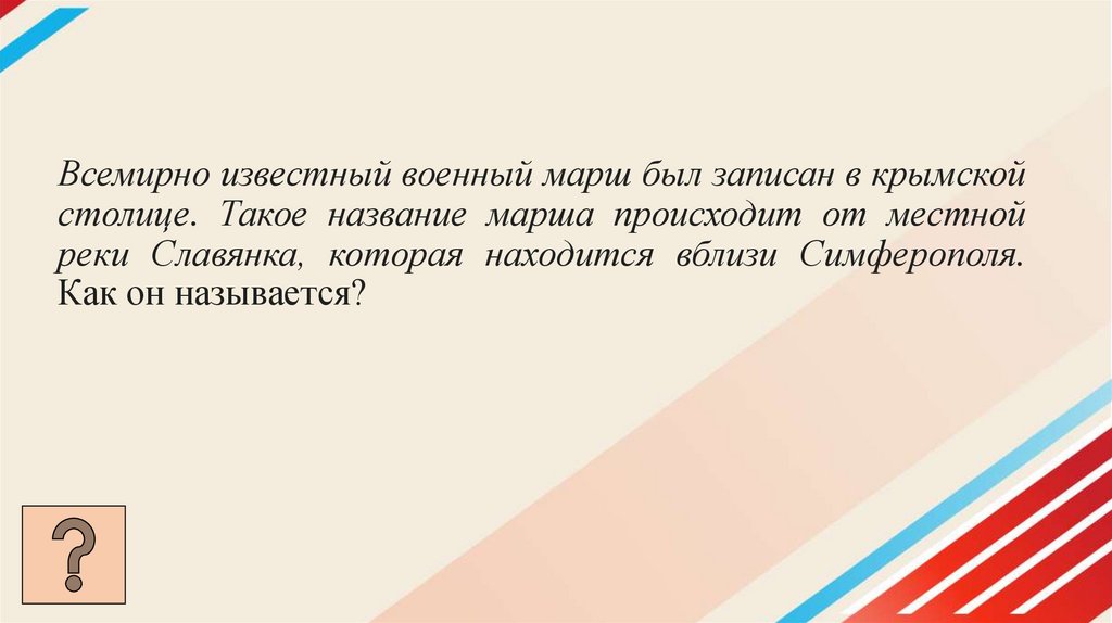Всемирно известный военный марш был записан в крымскойстолице. Такое название марша происходит от местной