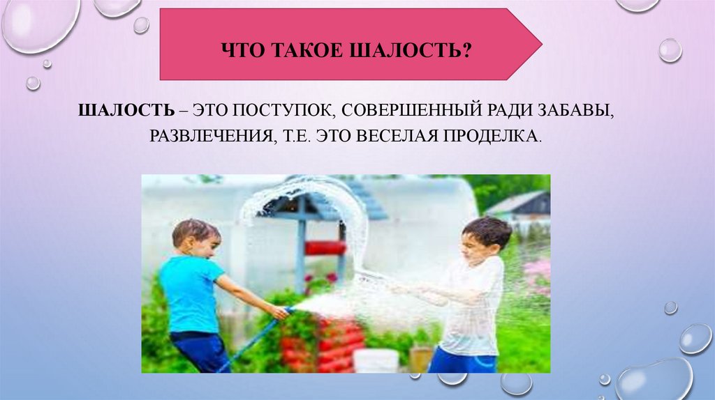 ЧТО ТАКОЕ ШАЛОСТЬ?ШАЛОСТЬ – ЭТО ПОСТУПОК, СОВЕРШЕННЫЙ РАДИ ЗАБАВЫ,