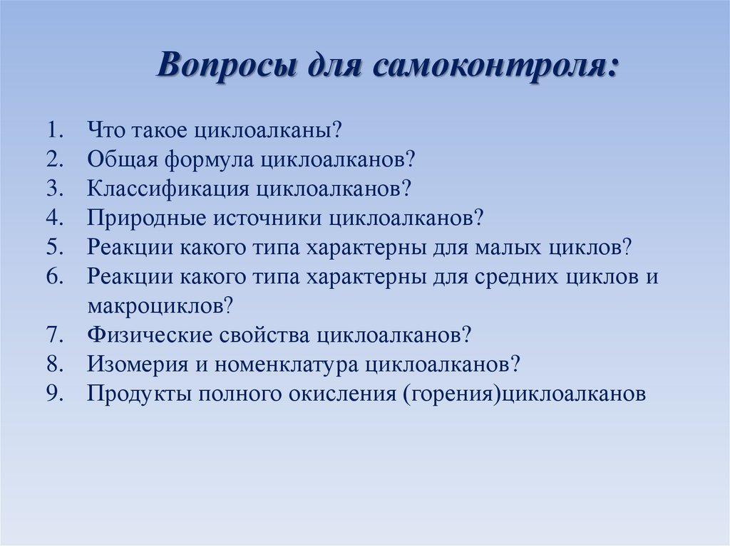 Вопросы для самоконтроля:Что такое циклоалканы?
