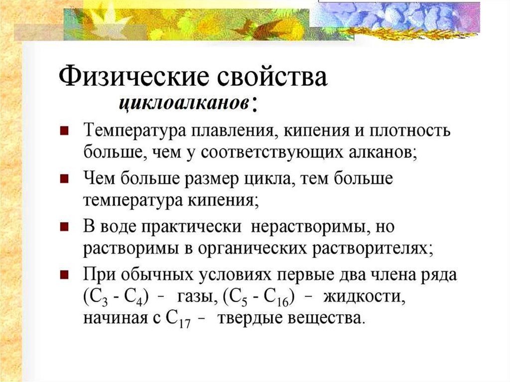 7. Физические свойства циклоалканов?