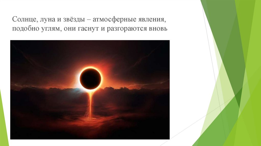 Солнце, луна и звёзды – атмосферные явления,подобно углям, они гаснут и разгораются вновь
