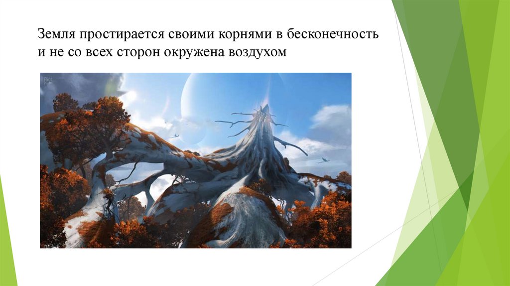 Земля простирается своими корнями в бесконечностьи не со всех сторон окружена воздухом