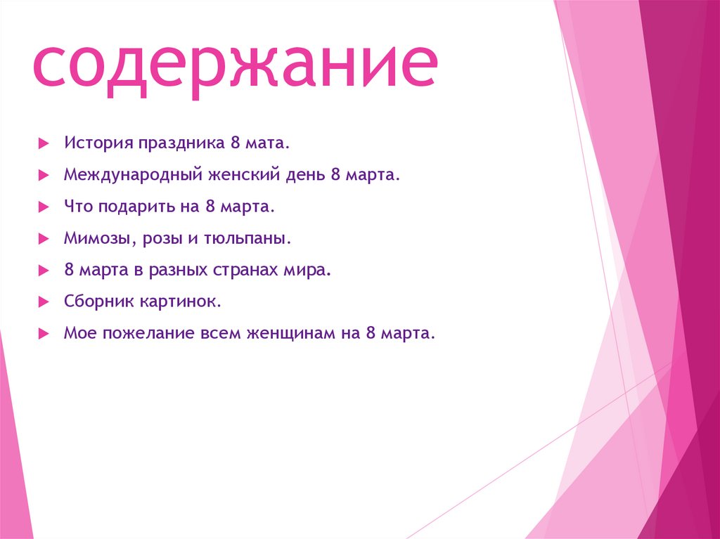 содержаниеИстория праздника 8 мата.