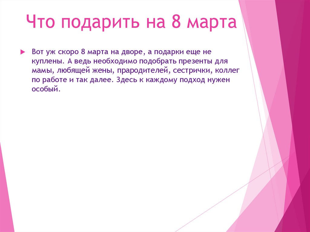 Что подарить на 8 мартаВот уж скоро 8 марта на дворе, а подарки еще не