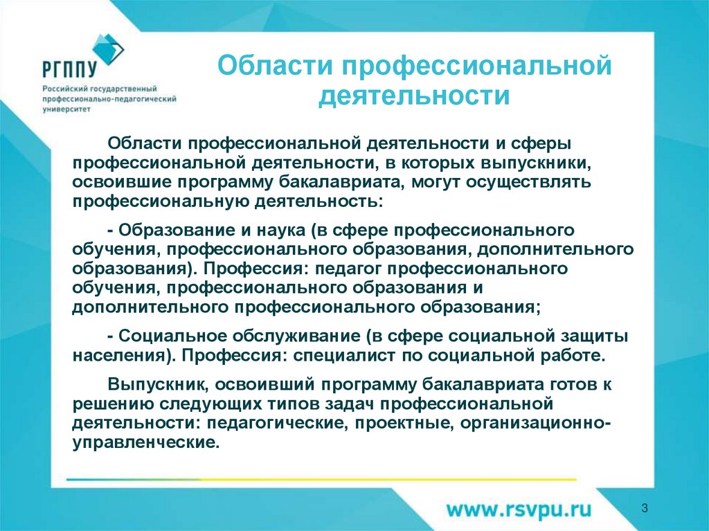 Области профессиональнойдеятельности