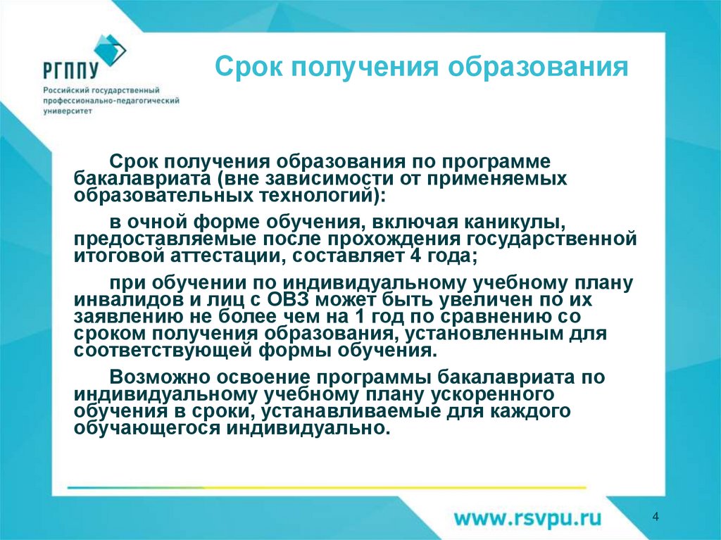 итоговой аттестации, составляет 4 года;