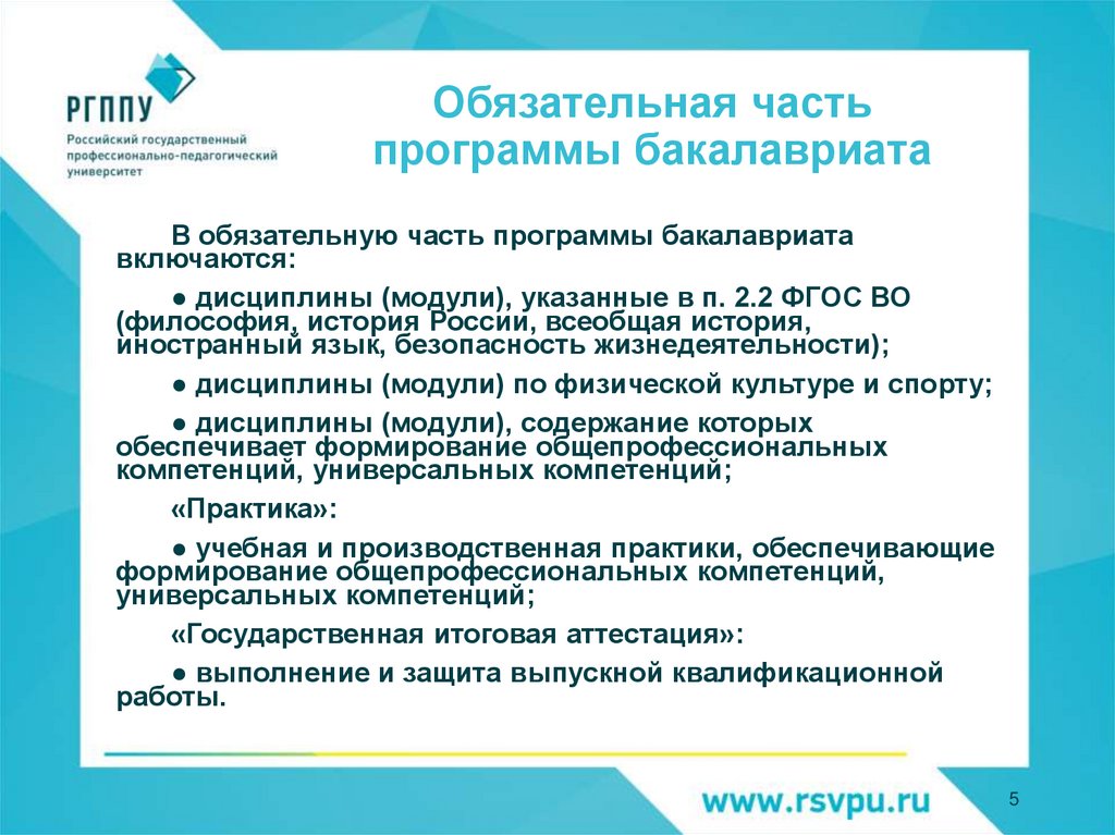 Обязательная частьпрограммы бакалавриата