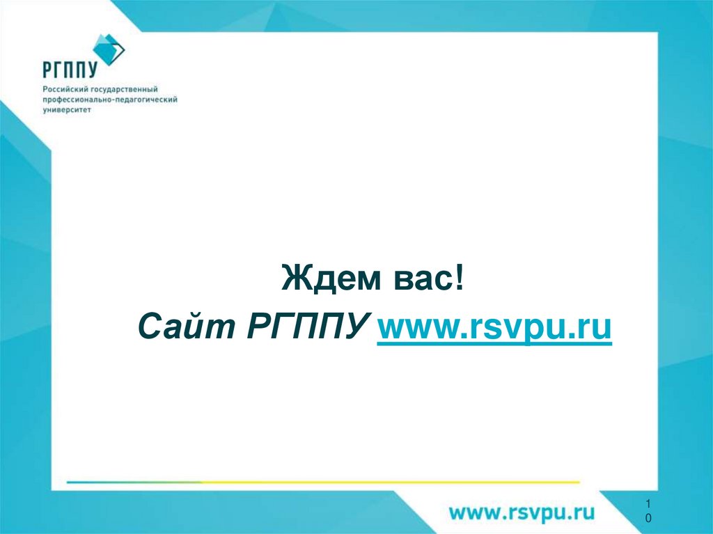 Ждем вас!Сайт РГППУ www.rsvpu.ru
