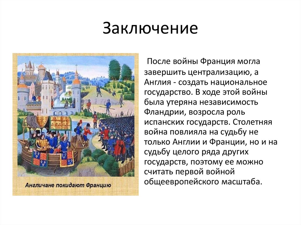 событиях Столетней войны и их влияния;