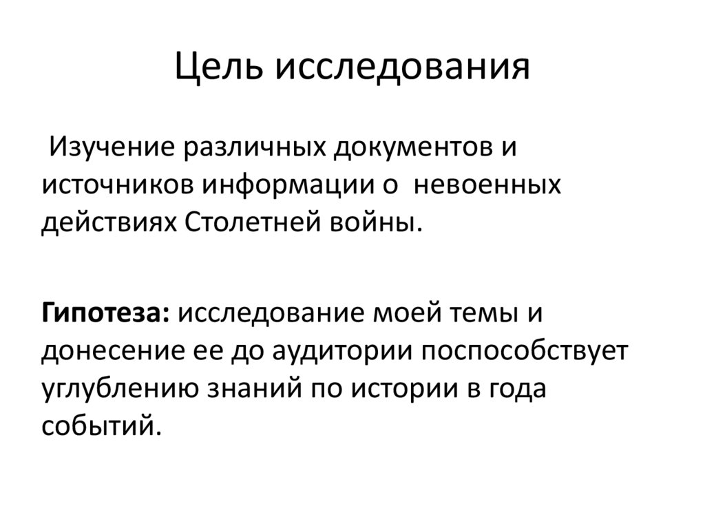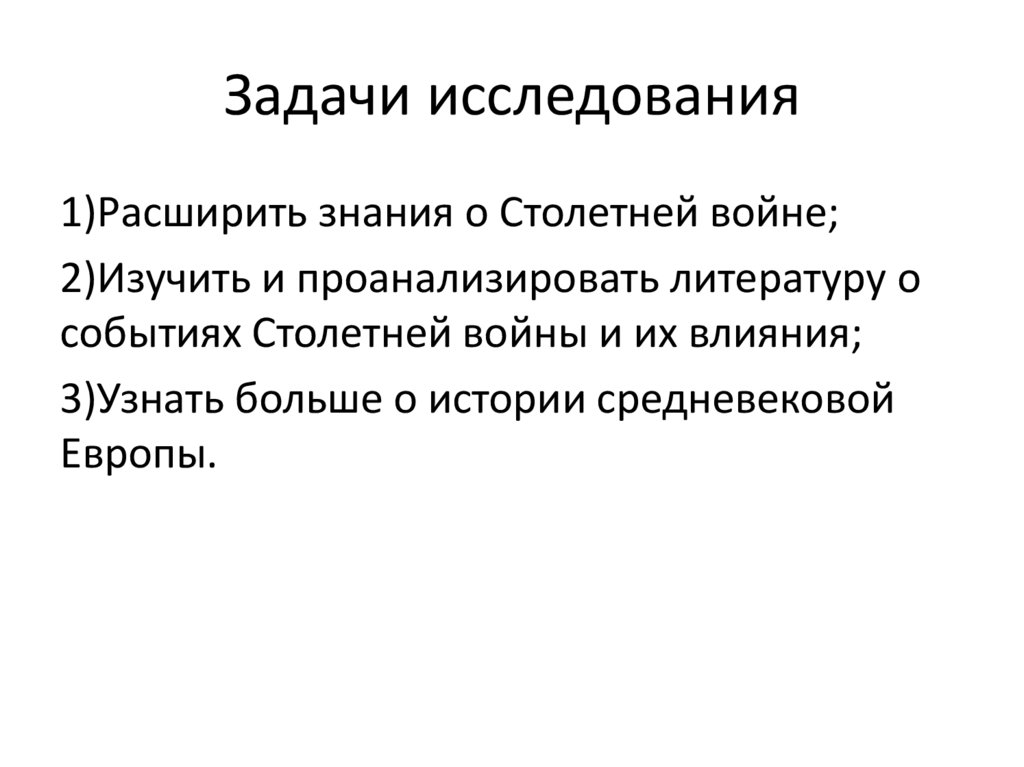 Задачи исследования1)Расширить знания о Столетней войне;