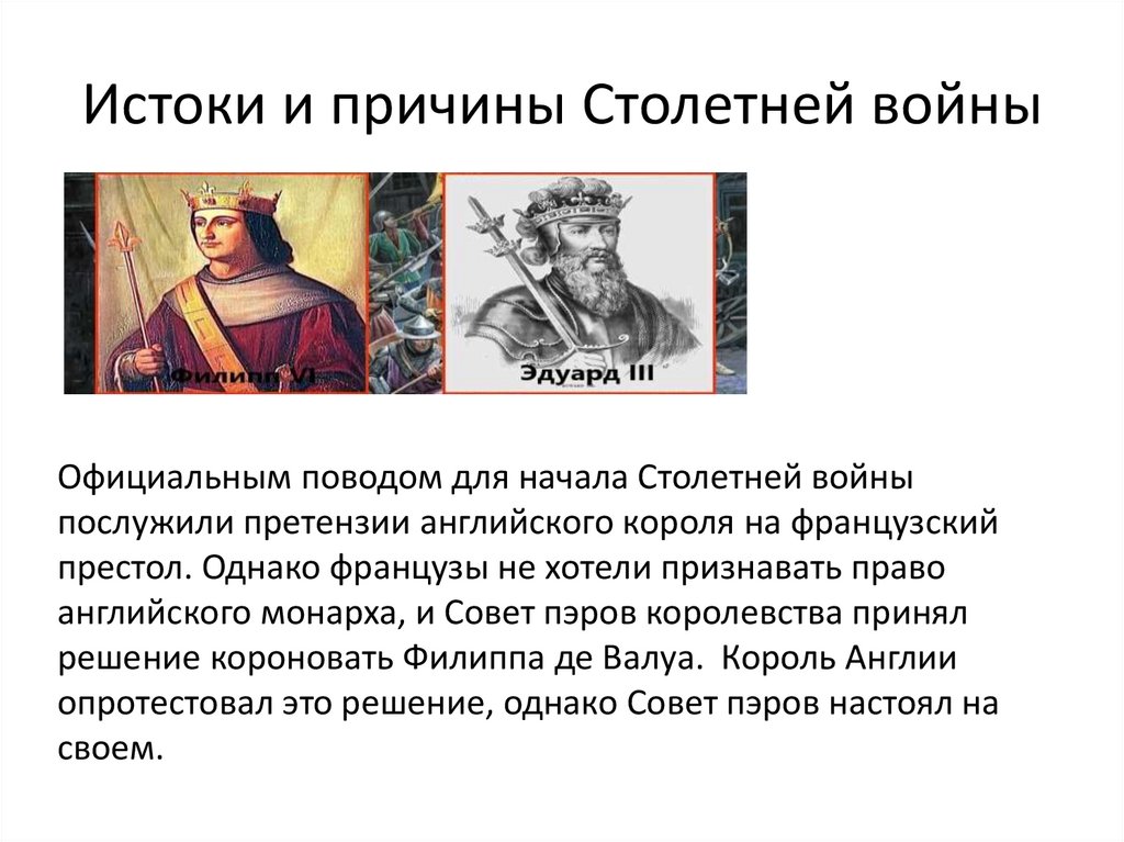 Истоки и причины Столетней войныОфициальным поводом для начала Столетней войны