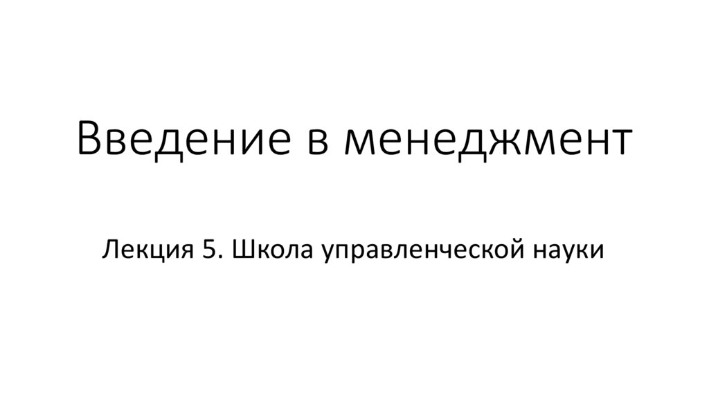 Введение в менеджмент. Лекция 5. Школа управленческой науки