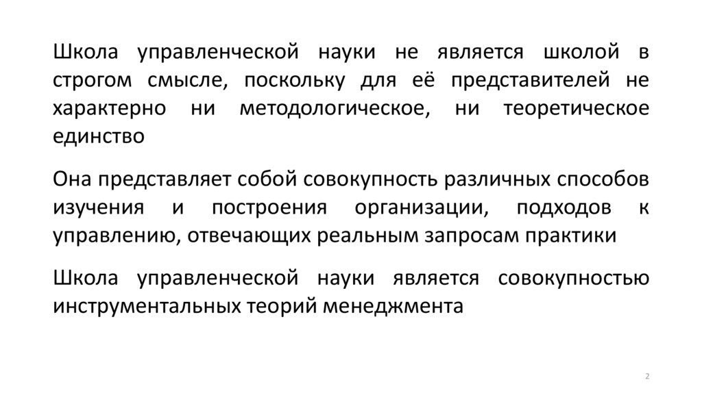 Школа управленческой науки не является школой встрогом смысле, поскольку для её представителей не
