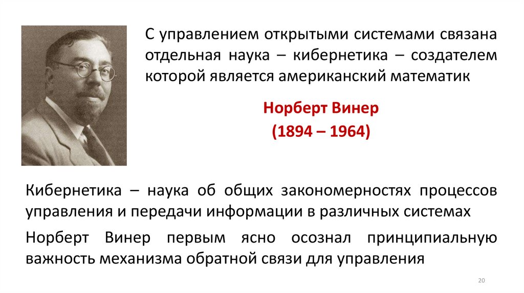 С управлением открытыми системами связанаотдельная наука – кибернетика – создателем