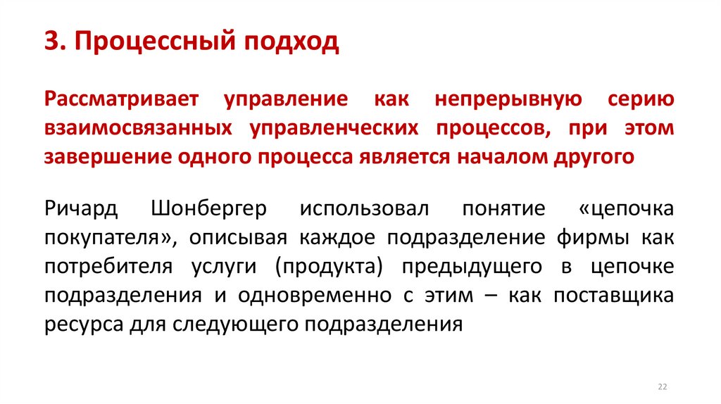 3. Процессный подходРассматривает управление как непрерывную серию