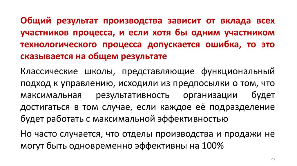 Общий результат производства зависит от вклада всехучастников процесса, и если хотя бы одним участником
