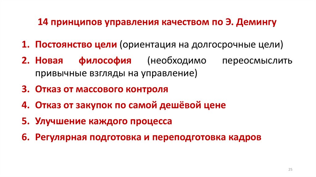 14 принципов управления качеством по Э. Демингу1. Постоянство цели (ориентация на долгосрочные цели)