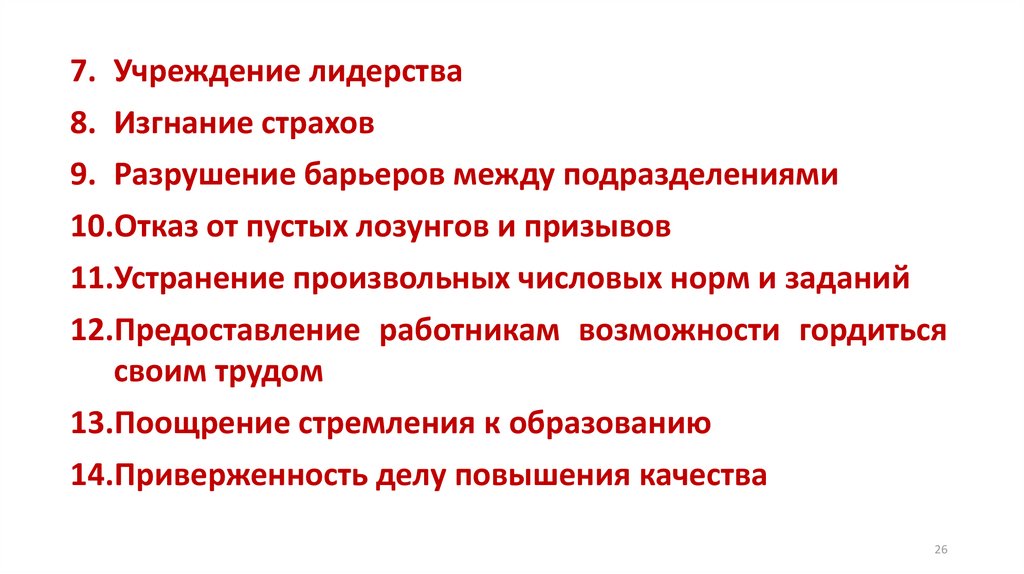 7. Учреждение лидерства8. Изгнание страхов