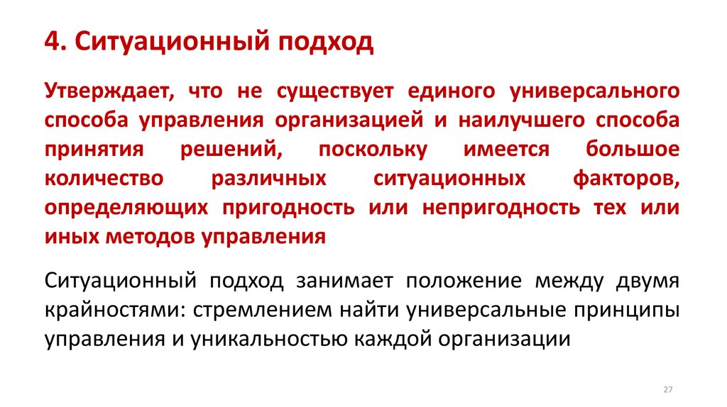 4. Ситуационный подходУтверждает, что не существует единого универсального