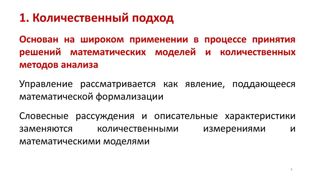 1. Количественный подходОснован на широком применении в процессе принятия