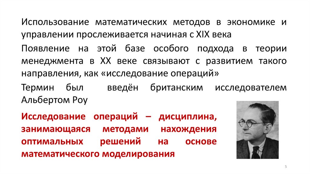 Использование математических методов в экономике иуправлении прослеживается начиная с XIX века