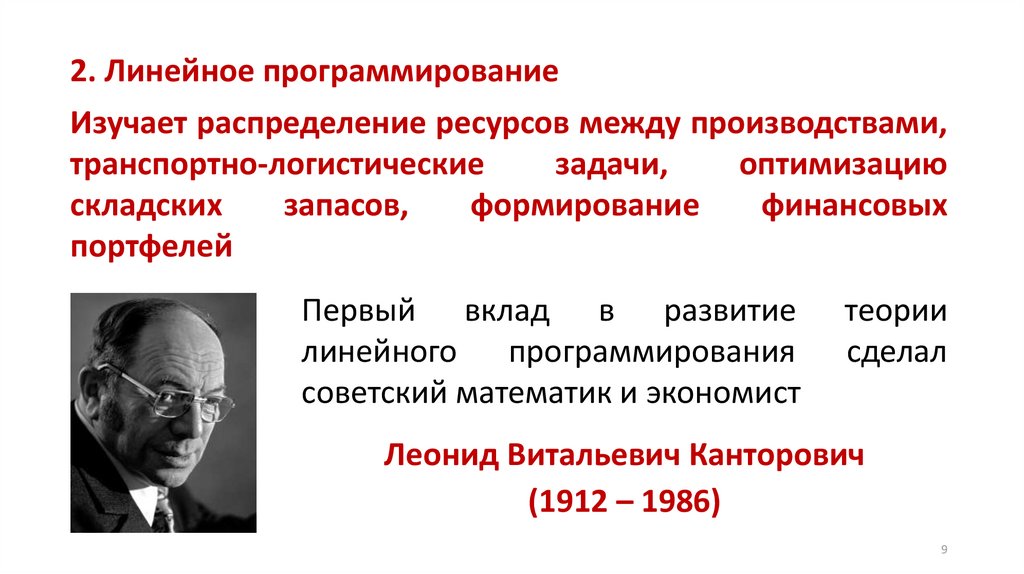 2. Линейное программированиеИзучает распределение ресурсов между производствами,