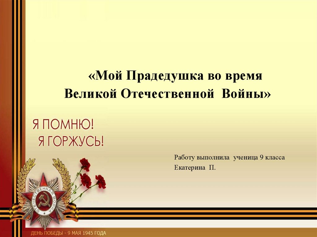 «Мой Прадедушка во времяВеликой Отечественной Войны»