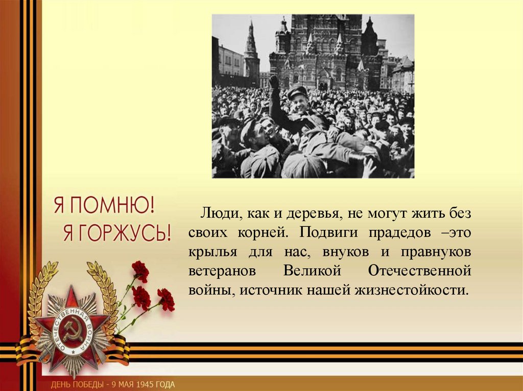 Люди, как и деревья, не могут жить безсвоих корней. Подвиги прадедов –это