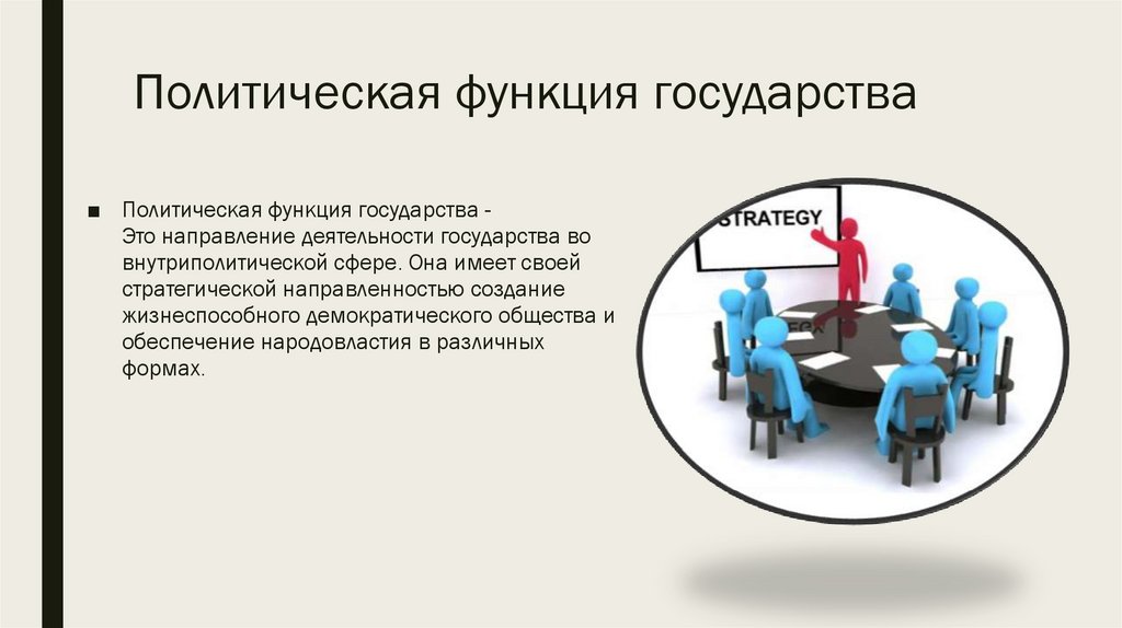 Политическая функция государства■ Политическая функция государства Это направление деятельности государства во