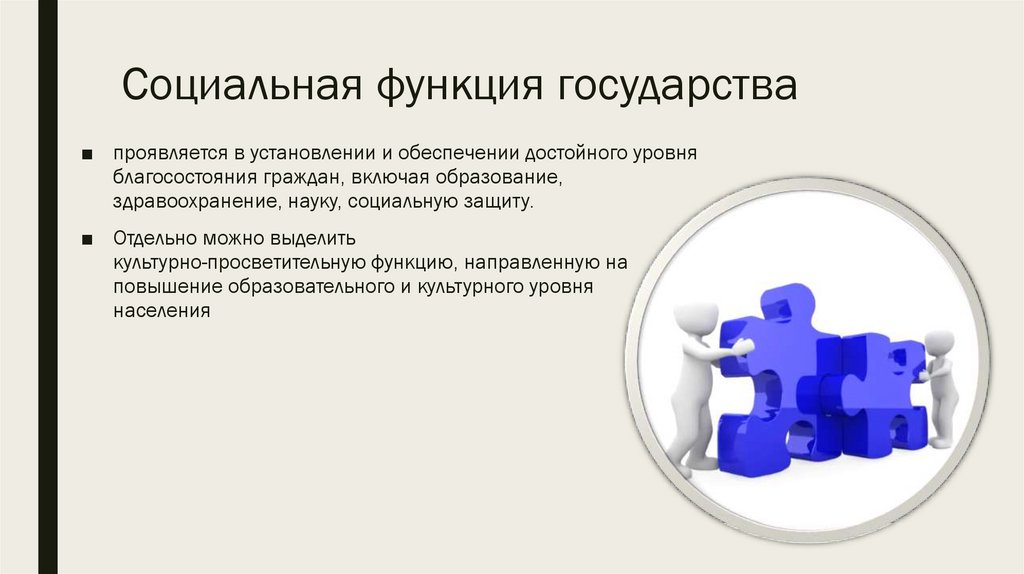 Социальная функция государства■ проявляется в установлении и обеспечении достойного уровня