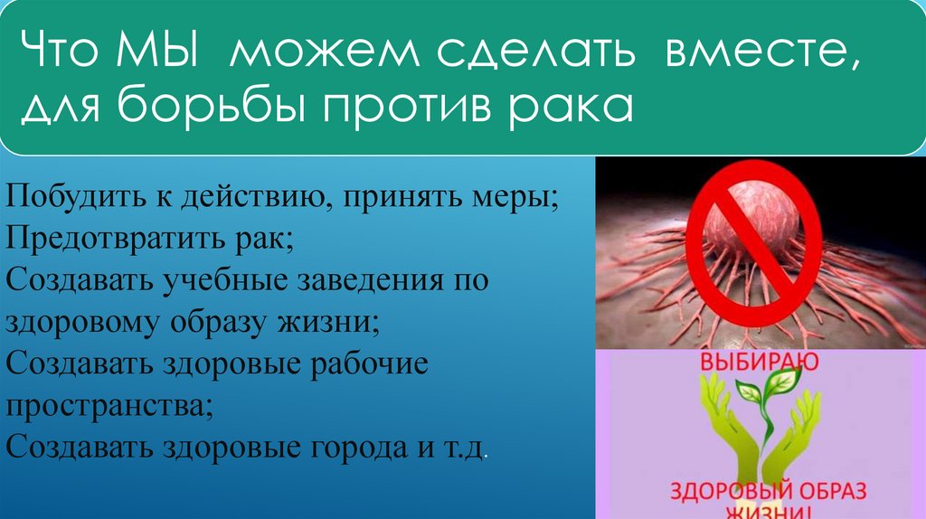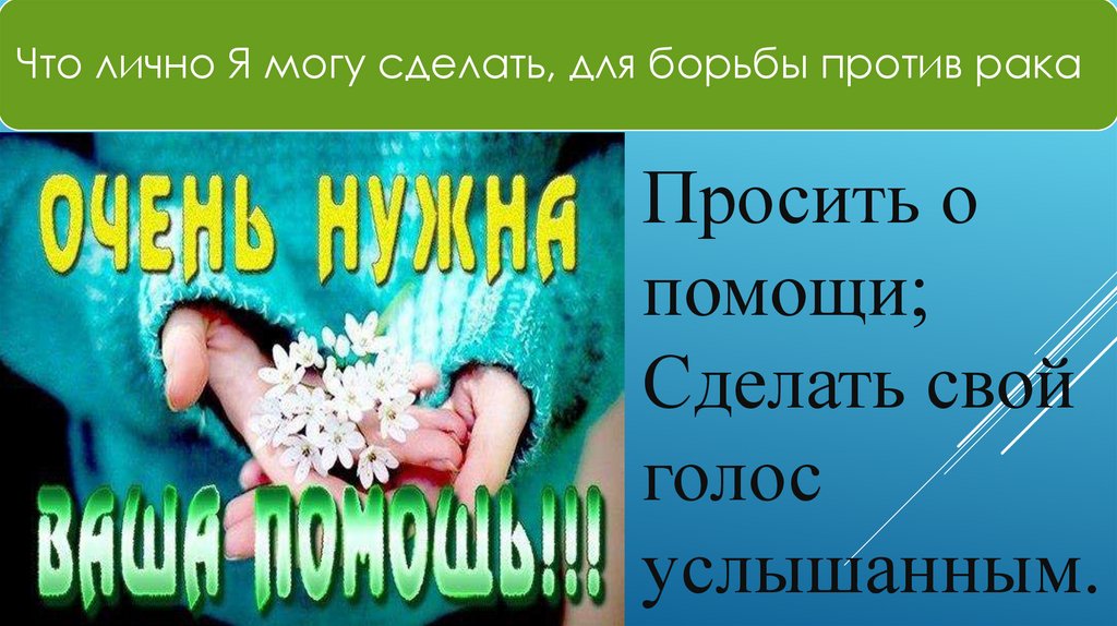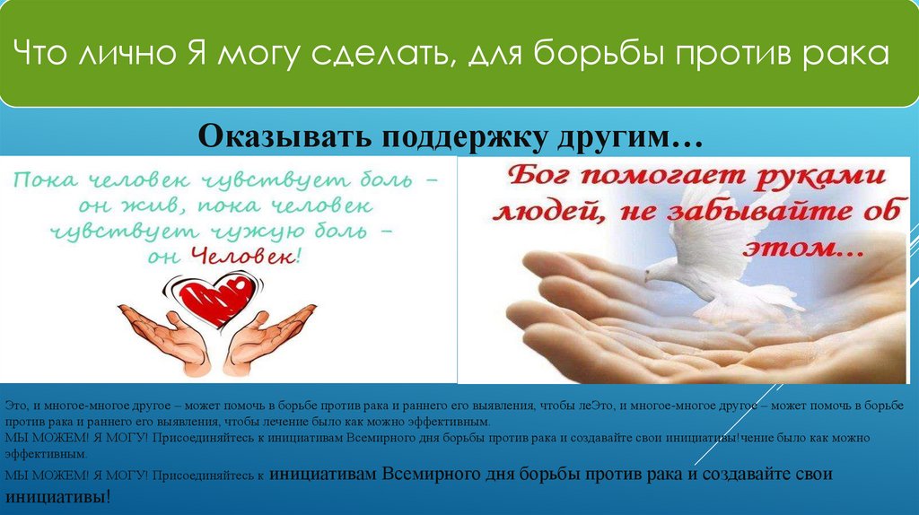 Что лично Я могу сделать, для борьбы против ракаОказывать поддержку другим…