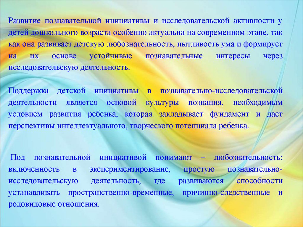 Развитие познавательной инициативы и исследовательской активности удетей дошкольного возраста особенно актуальна на современном этапе, так