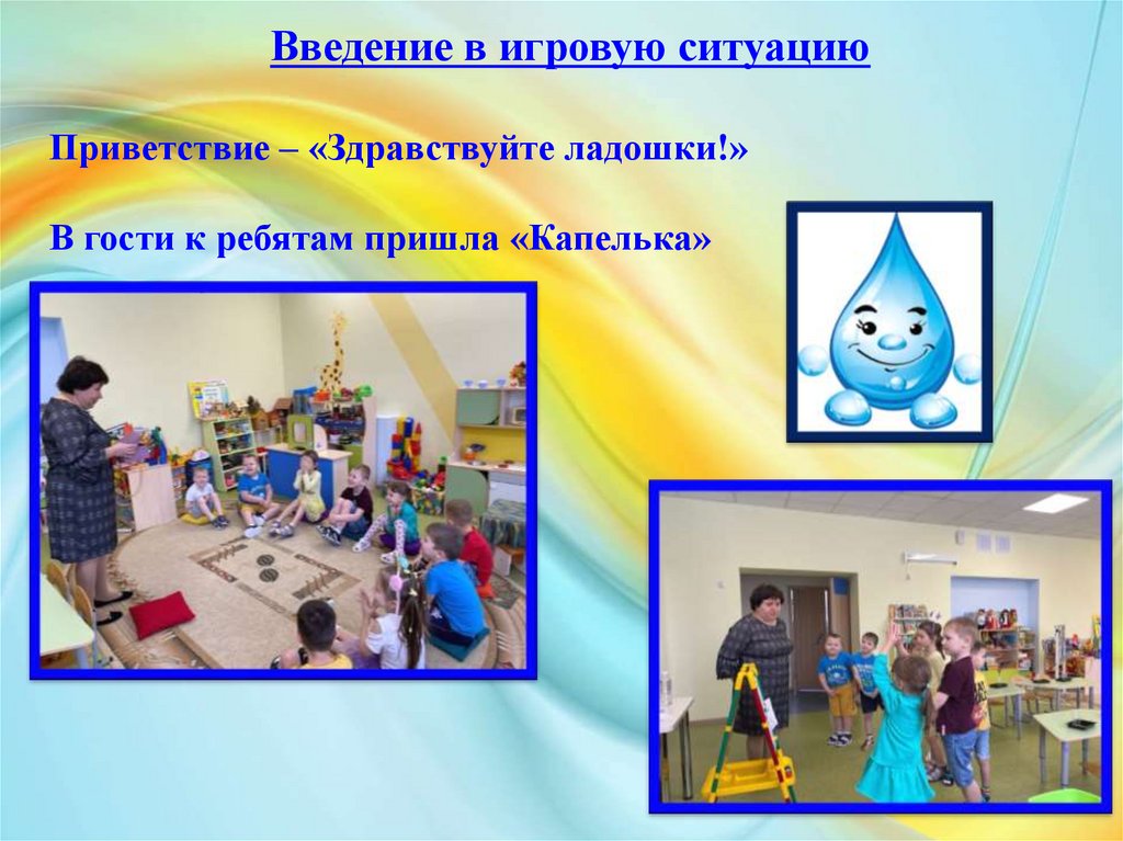 Введение в игровую ситуациюПриветствие – «Здравствуйте ладошки!»